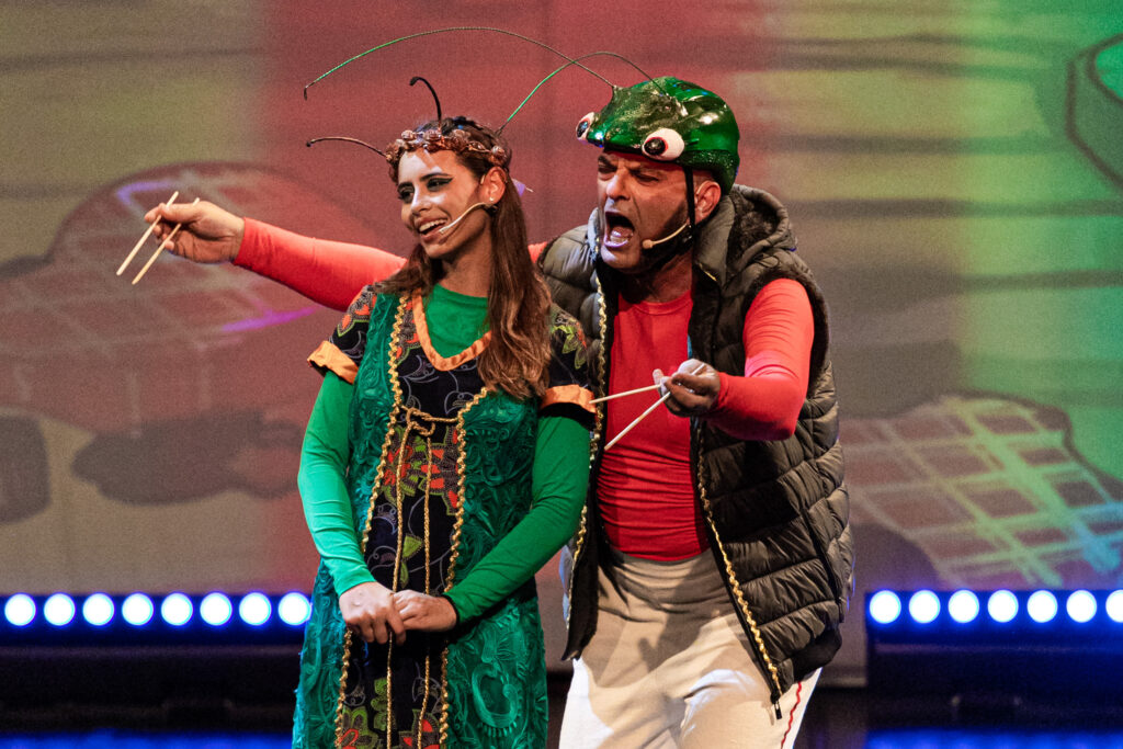 O espetáculo reúne música ao vivo, teatro e brincadeiras cantadas que atravessam gerações.